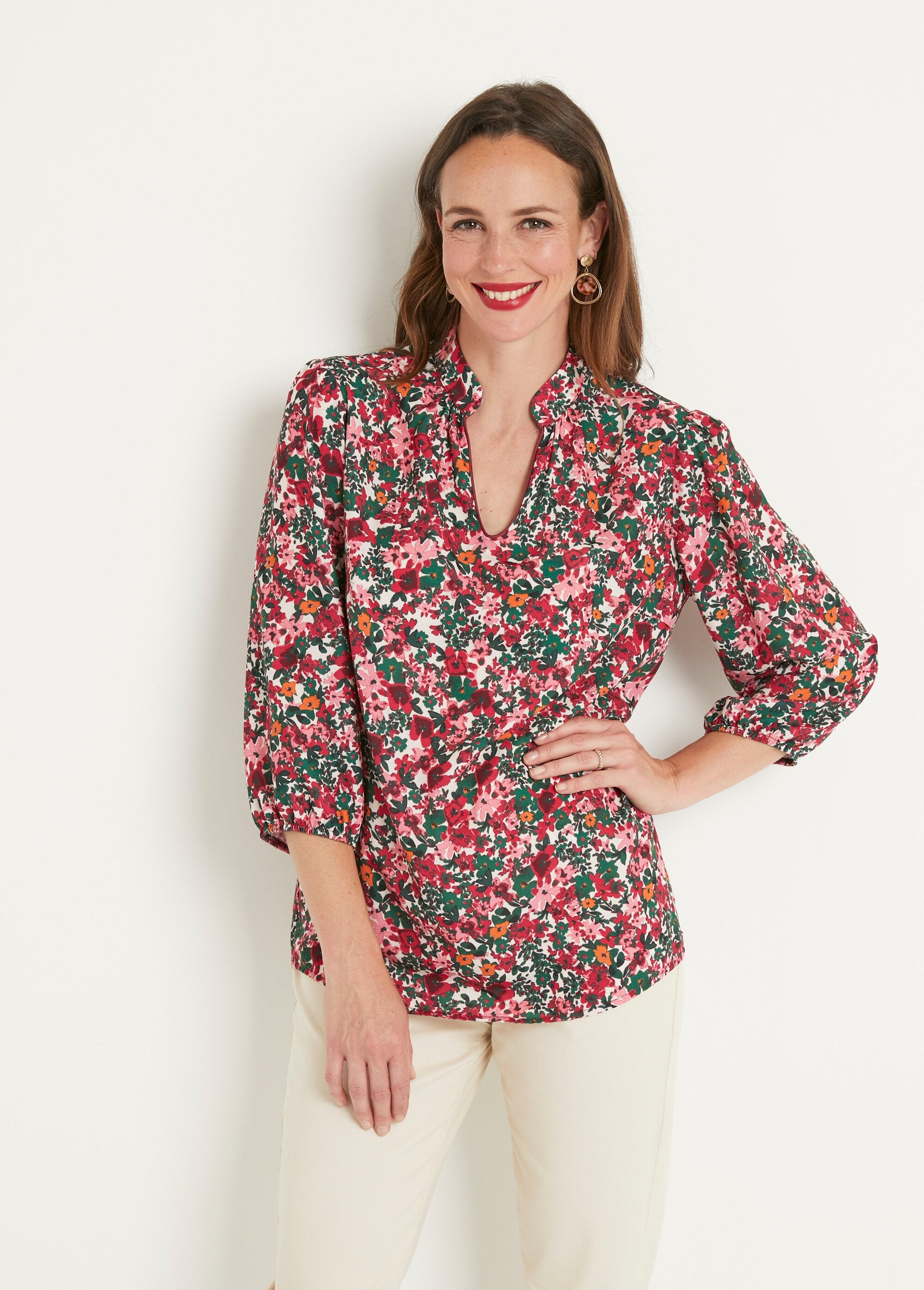 Túnica_de_manga_3/4_con_estampado_de_crisantemos_Crudo_y_rosa_FA1_slim Túnica_de_manga_3/4_con_estampado_de_crisantemos_Crudo_y_rosa_DO1_slim