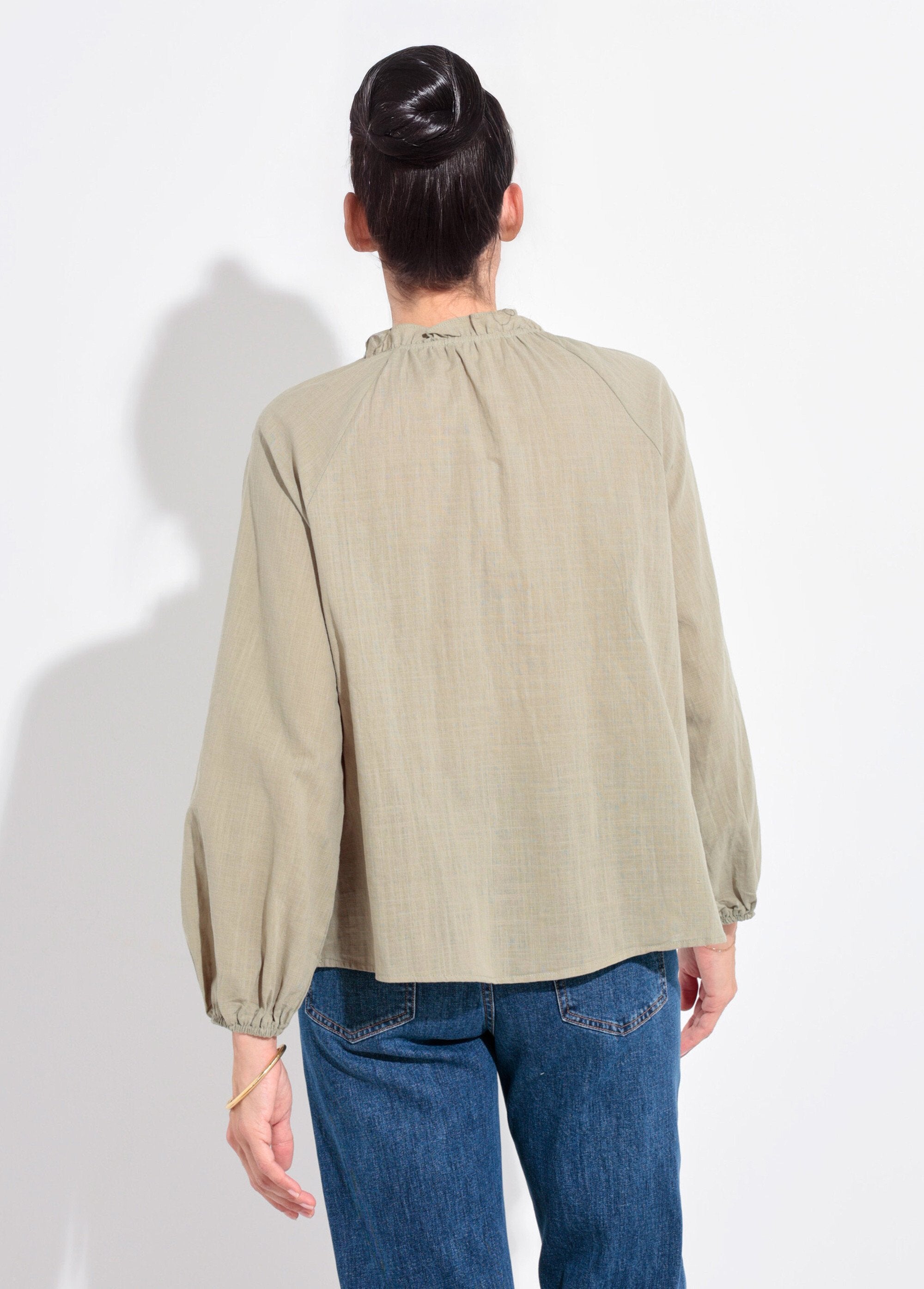 Blusa_holgada_con_cuello_en_V_y_lazo_Caqui_FA1_slim Blusa_holgada_con_cuello_en_V_y_lazo_Caqui_DO1_slim