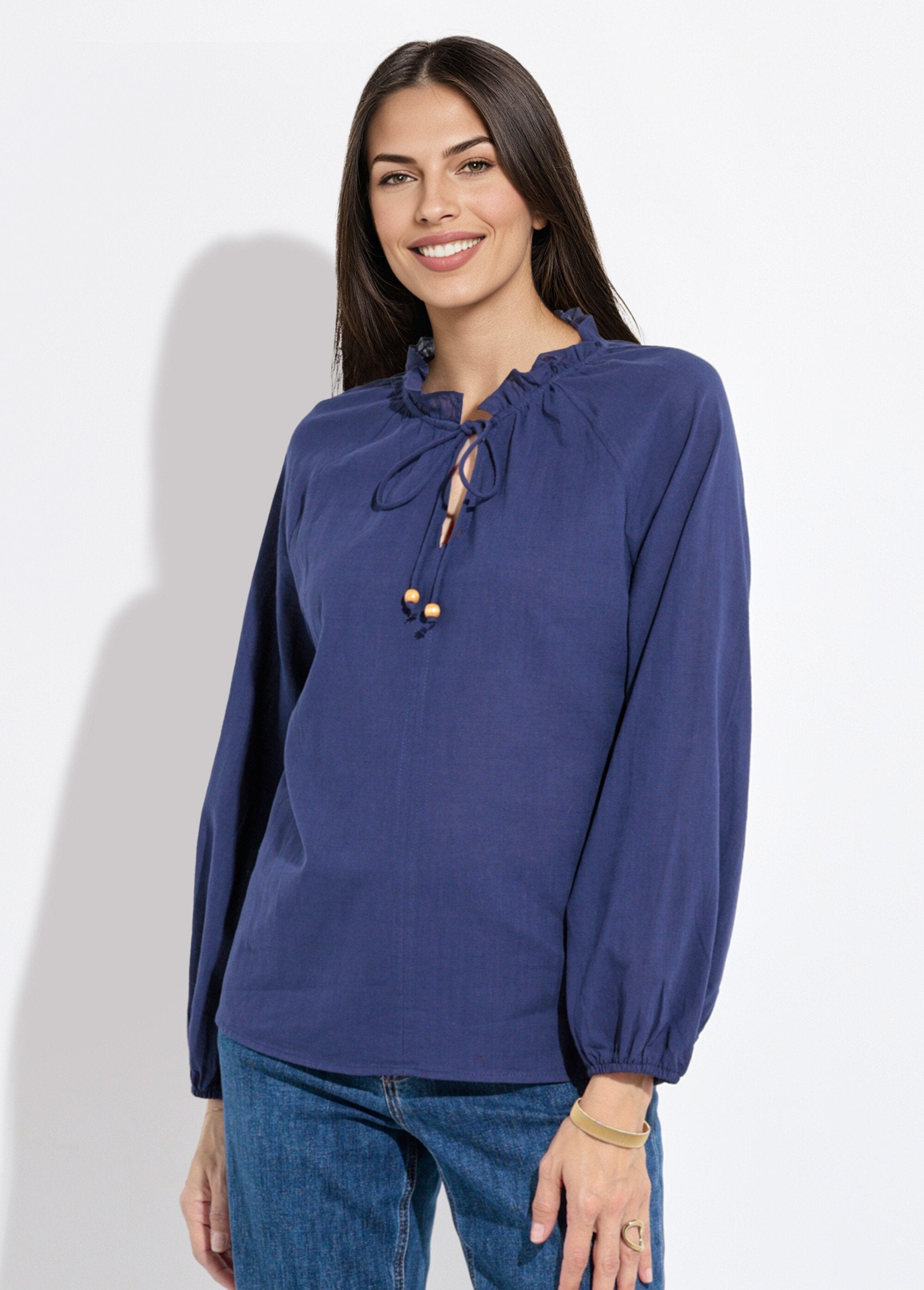 Blusa_holgada_con_cuello_en_V_y_lazo_Marina_FA1_slim Blusa_holgada_con_cuello_en_V_y_lazo_Marina_DO1_slim