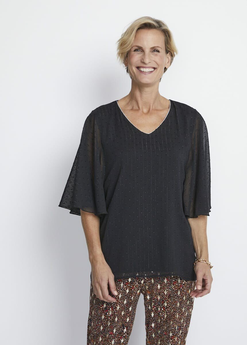 Túnica_de_voile_estampada_con_mangas_3/4_con_lazo_Negro_y_crudo_FA1_slim Túnica_de_voile_estampada_con_mangas_3/4_con_lazo_Negro_y_crudo_DO1_slim