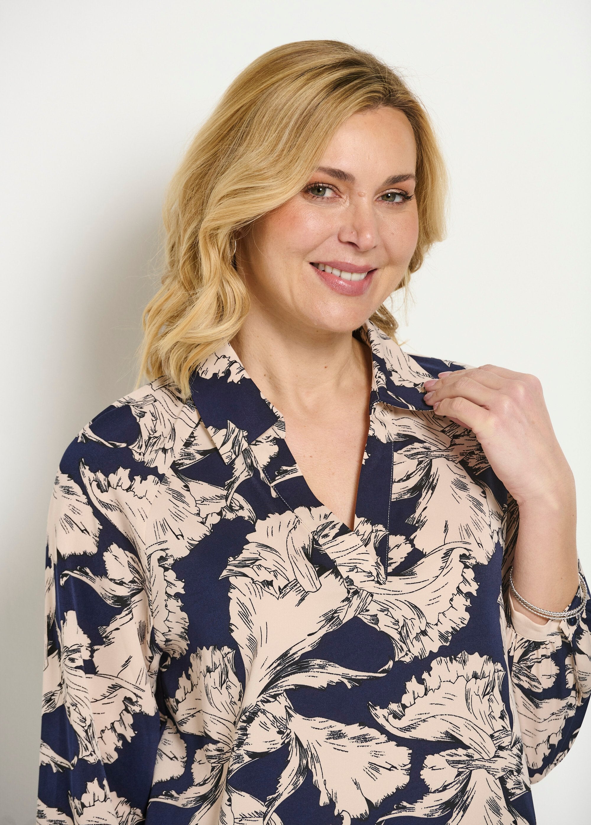 Túnica_larga_con_cuello_camisero_con_estampado_gráfico_azul_marino_y_blanco_SF1_curvy